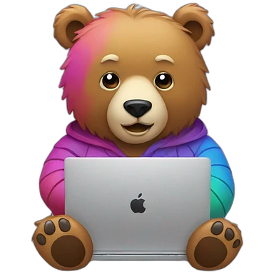 “A cute brown teddy bear using a laptop. Simple, cartoon style, focused expression.” emoji