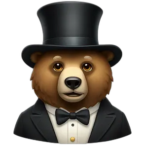 Bear wearing a red plaid jacket white shirt headphones and a hat backwards emoji