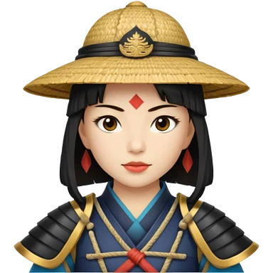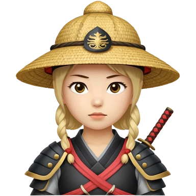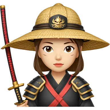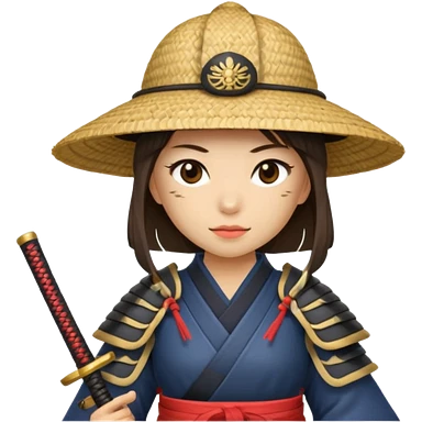 Samurai with straw hat, Warrior in samurai armor, female emoji