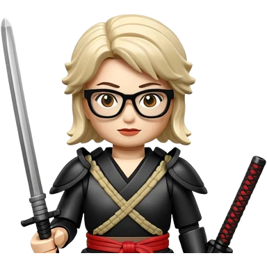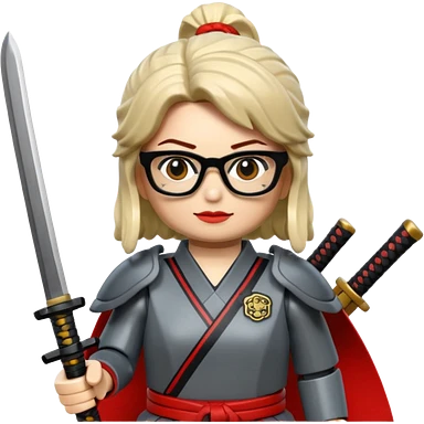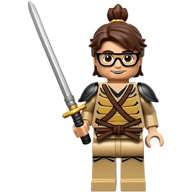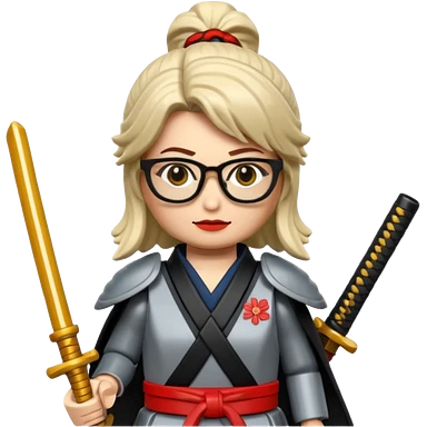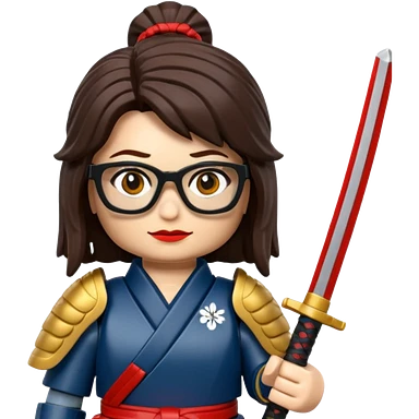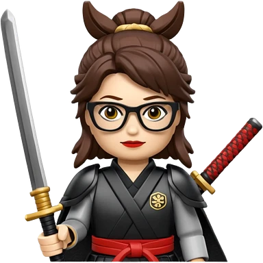 lego Samurai with glasses, Warrior in samurai armor, female, with katana emoji