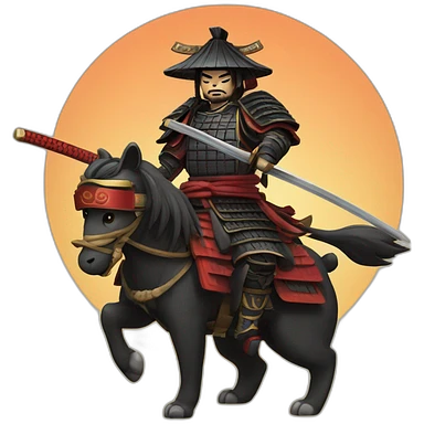 asian white skin Samurais in Hat, Samurai kneeling emoji