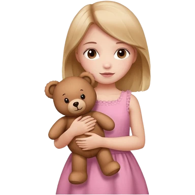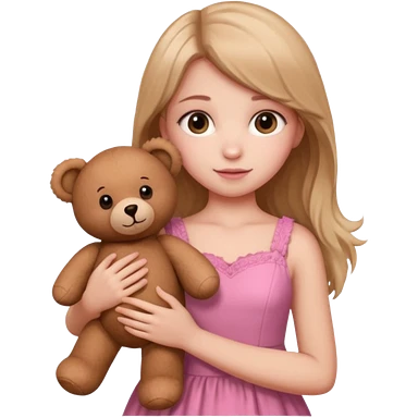 Girl in pink dress holding teddy bear emoji