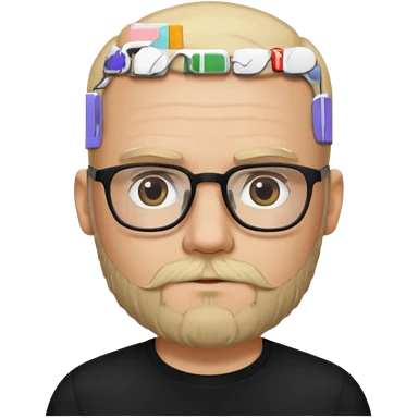 bearded blonde bald man with eyeglasses with black shirt emoji | AI Emoji Generator