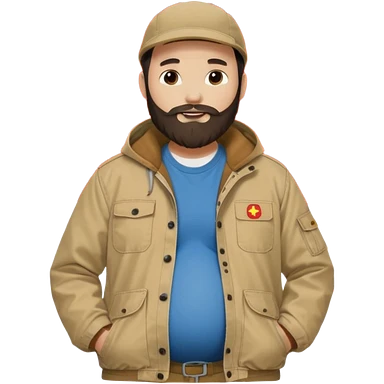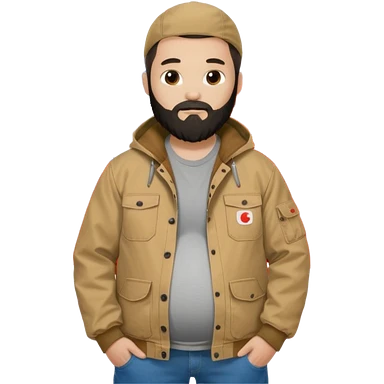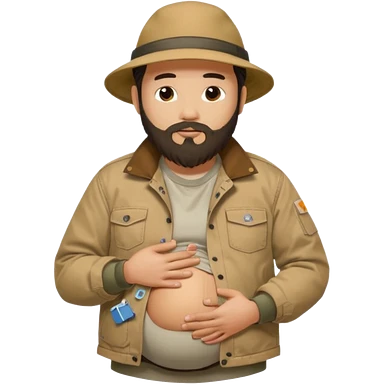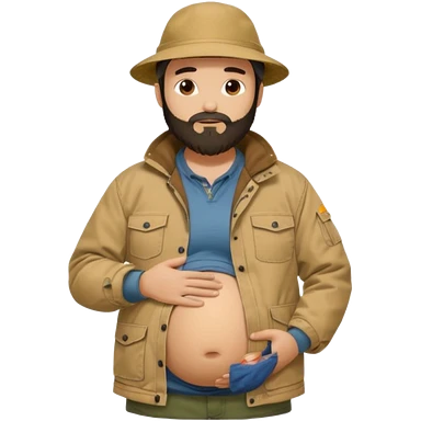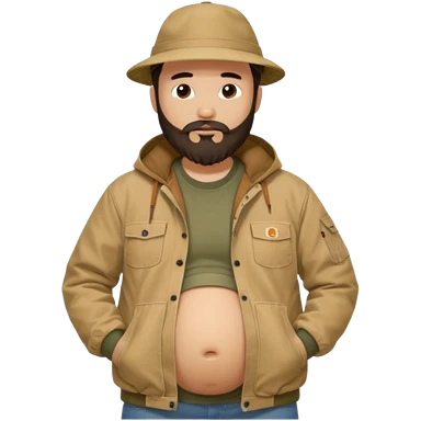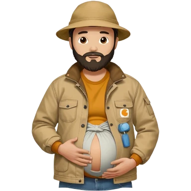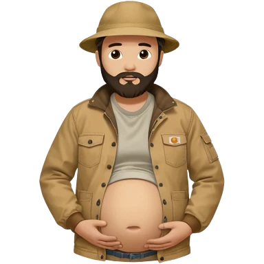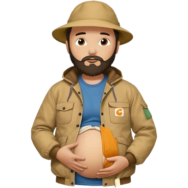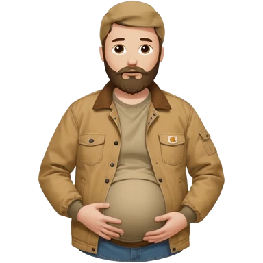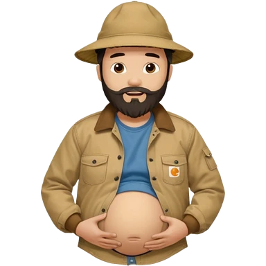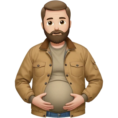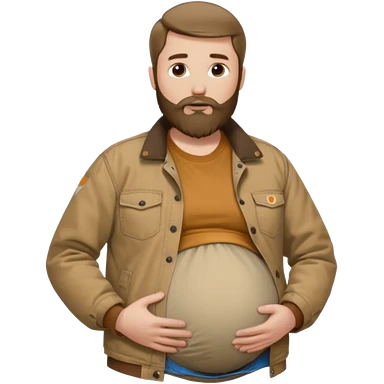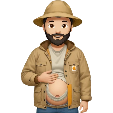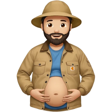 Bearded man rubbing pregnant belly poking out of shirt wearing a tan canvas carhartt jacket emoji
