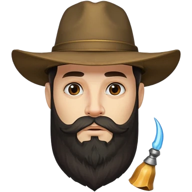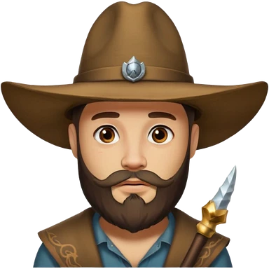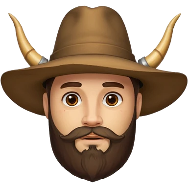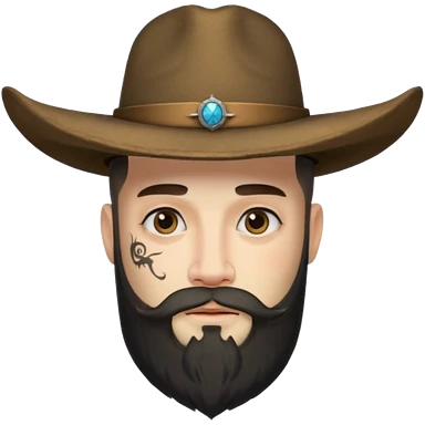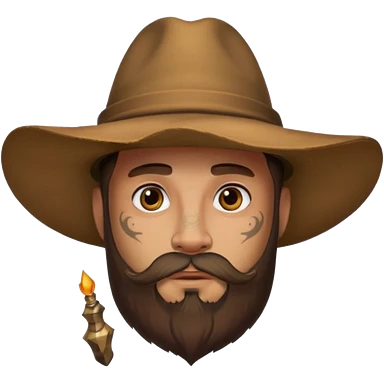 Bearded figure — large hat, faint horn symbols, tattoo on face emoji