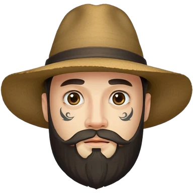 Bearded figure — large hat, faint horn symbols, tattoo on face emoji | AI Emoji Generator