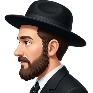 Hasidic Jewish man with wide-brimmed black hat, curled side locks, short beard, traditional attire, neutral expression emoji