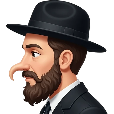 Stereotypical Hasidic Jew with curly hair and a large black hat and a long curved nose emoji