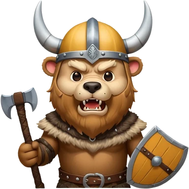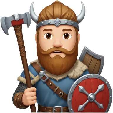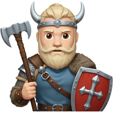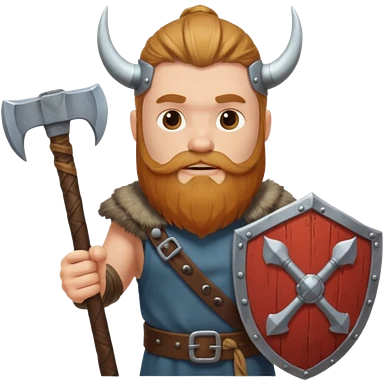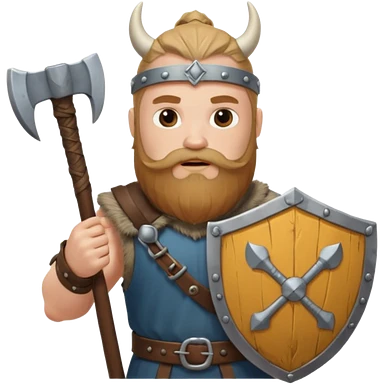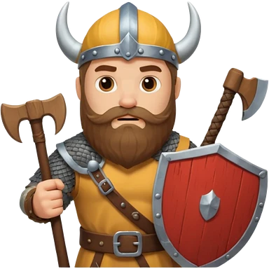 Bearded viking holding axe and shield emoji | AI Emoji Generator