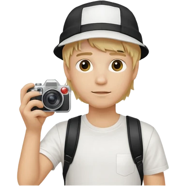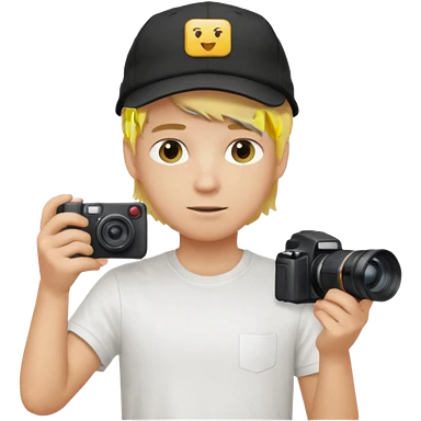 Young male, holding camera, white t-shirt, cap, blond hair emoji