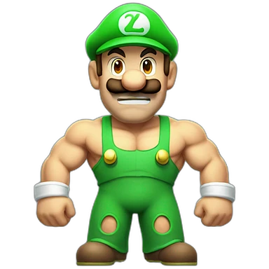Synthwave Luigi in Lordi style, oil paint, epic eyes, intricate lips, exquisite pose, beautiful, desirable, logical emoji