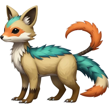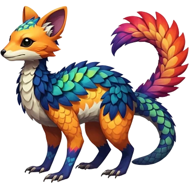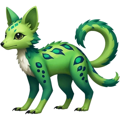 beautiful handsome gorgeous aesthetic colorful vibrant Vernid-Trico-species-Fakemon-creature by LiLaiRa, 4 legs, 1 tail, random markings, (full body) emoji