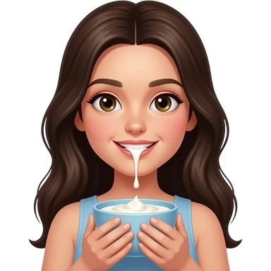 beautiful pale brunette girl with long hair with yogurt, dripping from her mouth emoji