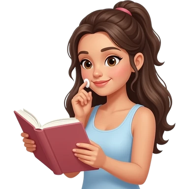 brunette curl hair brown woman reading a book cozy aesthetic emoji