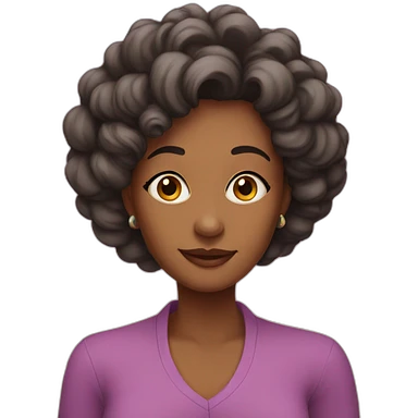 A beautiful mother with black long dark hair and curls at the end. She has deep blue eyes and big pink lips. She also has golden earrings with pearls. emoji