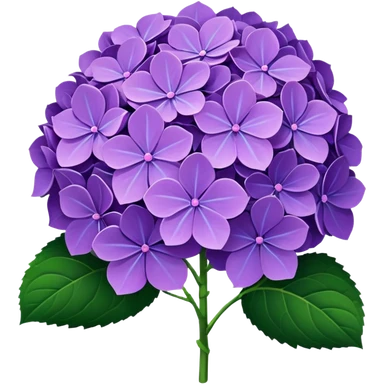 Natural hydrangea flower with realistic cluster of tiny individual blooms, soft color gradients from center to edge, slightly irregular rounded shape, and detailed green leaves emoji