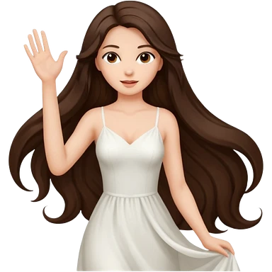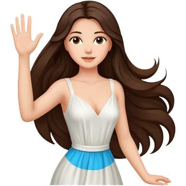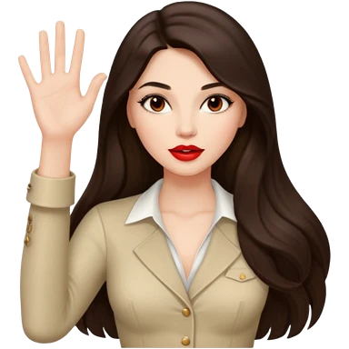 Beautiful brunette lady sexy with raised hand long hair emoji | AI Emoji Generator