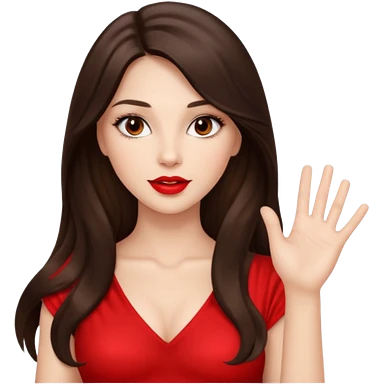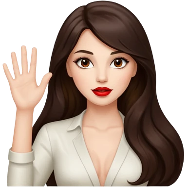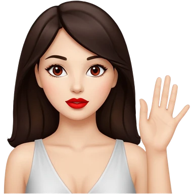 Beautiful brunette lady sexy with raised 1 hand, long hair red lips emoji