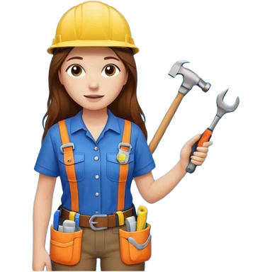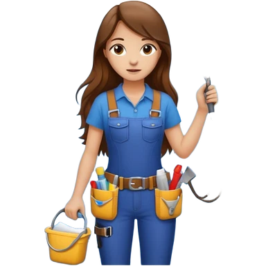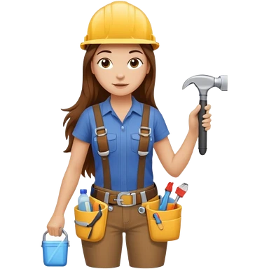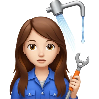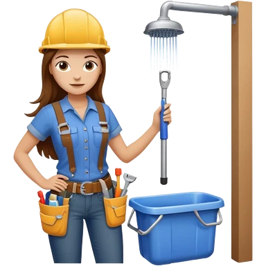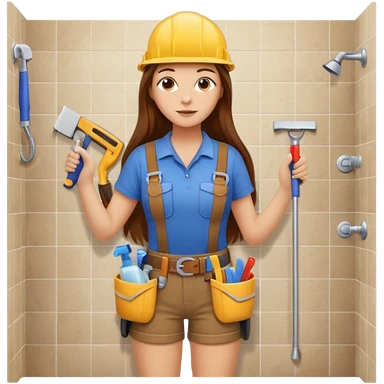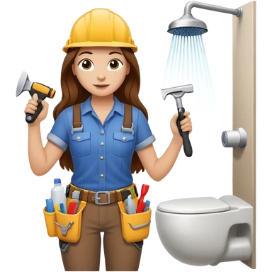 beautiful girl with long brown hair constructing new bathroom area with new shower and amenities emoji