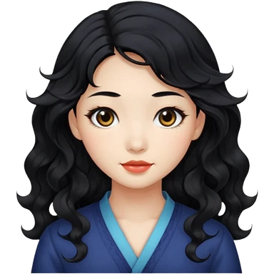 beautiful Chinese girl with black wavy long hair and black eyes emoji | AI Emoji Generator