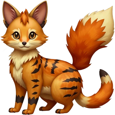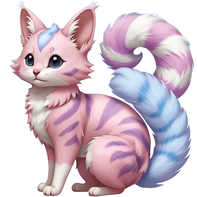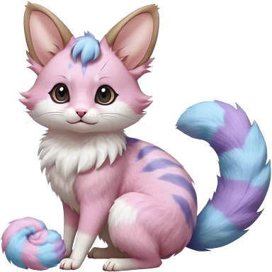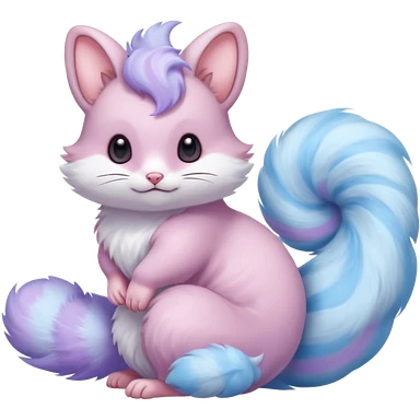 beautiful elegant pretty precious cute Fakémon-Pokémon-opossum-feline-serval-caracal-chinchilla-Furret-Minccino-hybrid-creature with a big fluffy bushy tail (full body) emoji | AI Emoji Generator