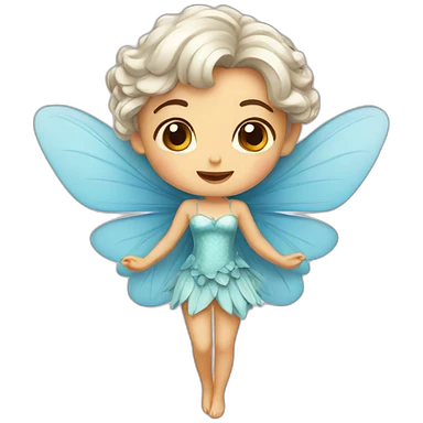 beautiful fairy with pink wings, brown wavy hair, and blue eyes, holding a computer mouse emoji
