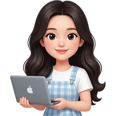 beautiful girl, with long black hair, wavy hair, korean, with laptop emoji