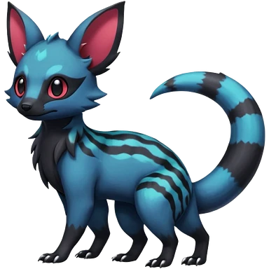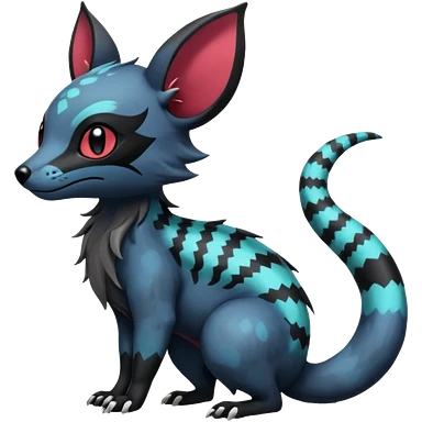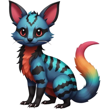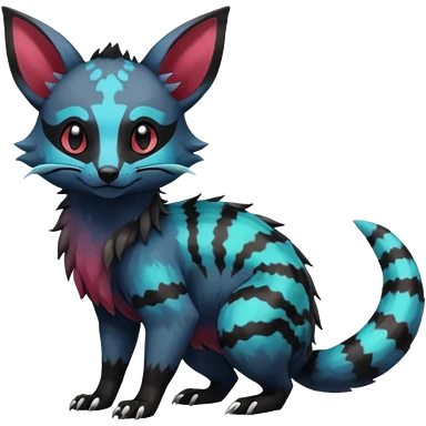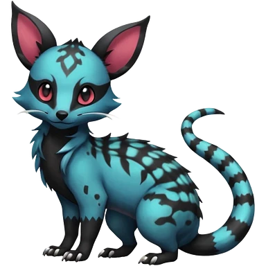 Rare beautiful pretty handsome exotic cute epic aesthetic gothic colorful Salandit-Eevee-Civet-species-Fakemon-hybrid-creature, with markings, full body emoji