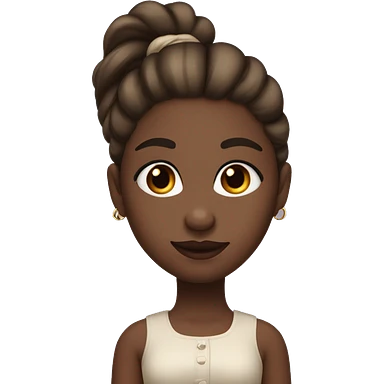 Dark-skinned girl with beautiful plump red lips, big brown eyes with long lush lashes, with a small nose. Her hair is tied in a pony tail, dark blonde emoji