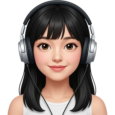 beautiful girl, with black hair, with a bit tanned skin, korean, listening to music with headphone, make it like apple emoji emoji | AI Emoji Generator