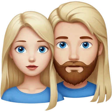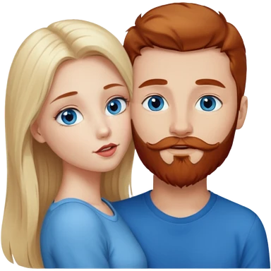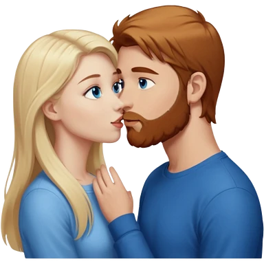 Long-pale-blonde hair, beautiful girl with blue eyes faceing-kissing reddish-brown hair and beard boy blue eyed white guy emoji