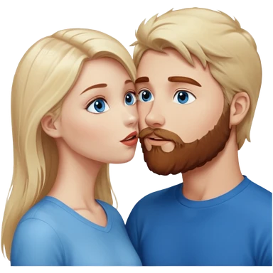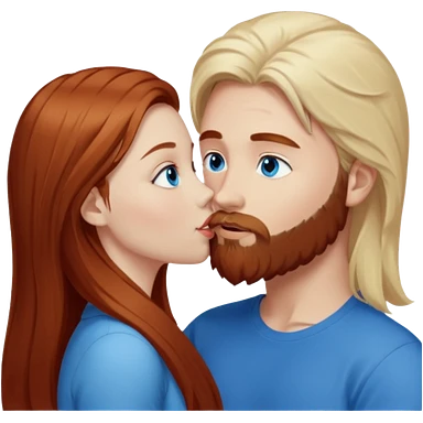 Long-pale-blonde hair, beautiful girl with blue eyes facing, lips touching, reddish-brown hair-beard boy blue eyed white guy emoji