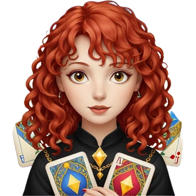 Red curly hair with bangs beautiful girl with tarot emoji
