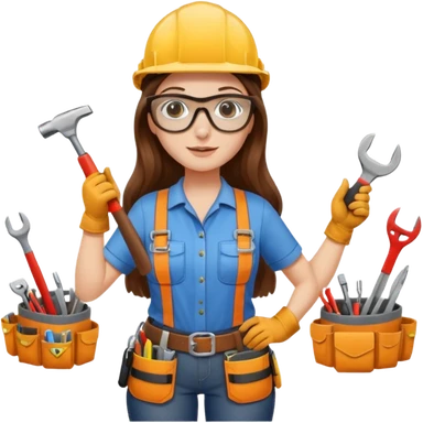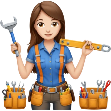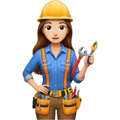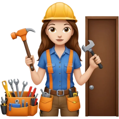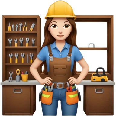 beautiful girl with long brown hair constructing new lounge room area with tv and couch emoji | AI Emoji Generator