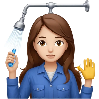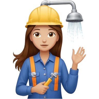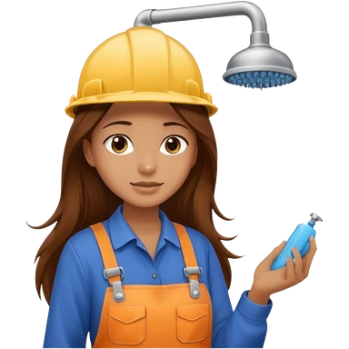 beautiful girl with long brown hair constructing new shower in bedroom emoji | AI Emoji Generator