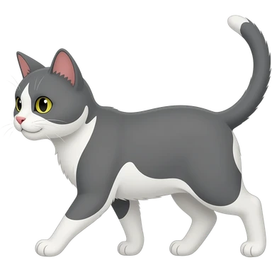 The cartoon grey and white cat walks emoji