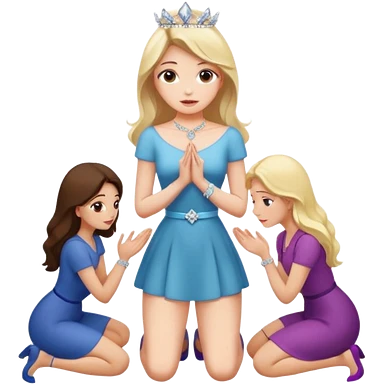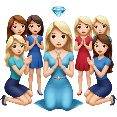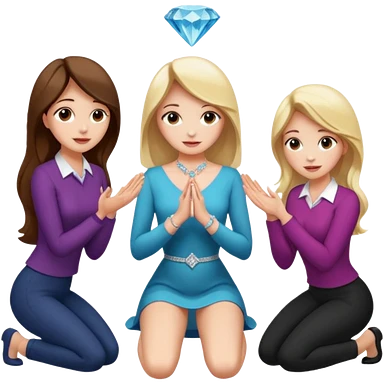 Beautiful girl knelt down by the grace of other women like proposing emoji