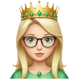 beautiful princess with blonde hair, striking green eyes, wearing glasses and a crown emoji