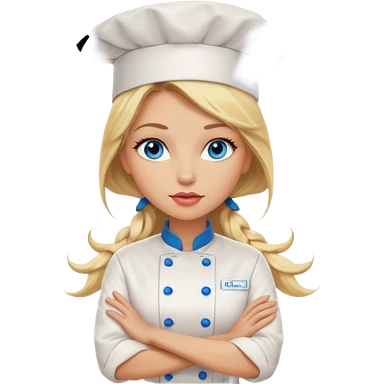 Beautiful, sexy, long blonde hair, blue eyed, full lips female chef arms folded emoji