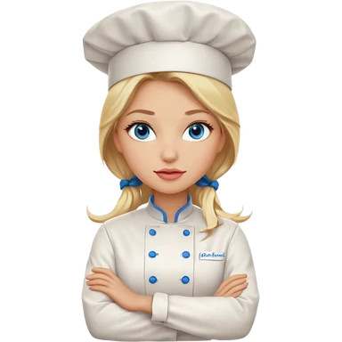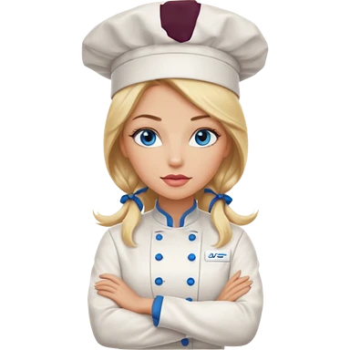 Beautiful, sexy, long blonde hair, blue eyed, full red lips plunging v neck chefs coat, female chef arms folded emoji | AI Emoji Generator