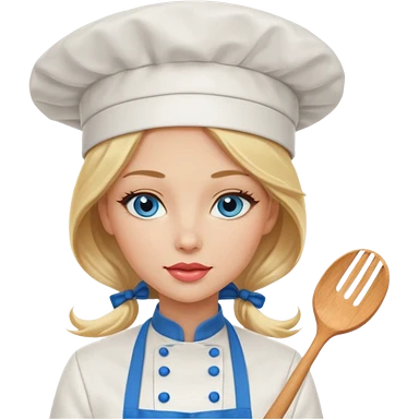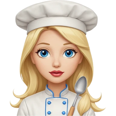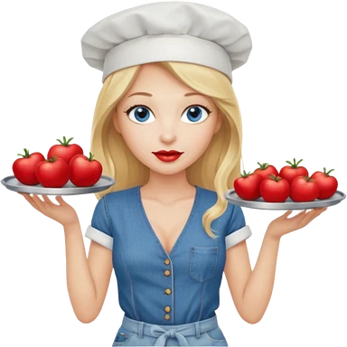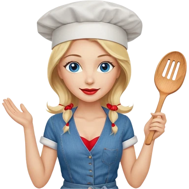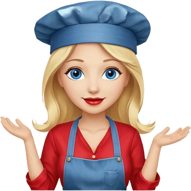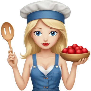 Beautiful, sexy, long blonde hair, blue eyed, full red lips plunging v neck shirt, denim shorts, chef hat emoji | AI Emoji Generator