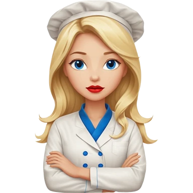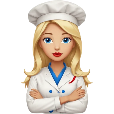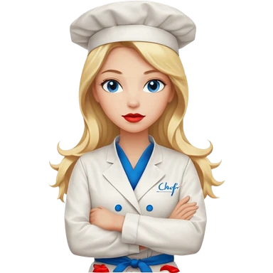 Beautiful, sexy, long blonde hair, blue eyed, full red lips female chef arms folded emoji