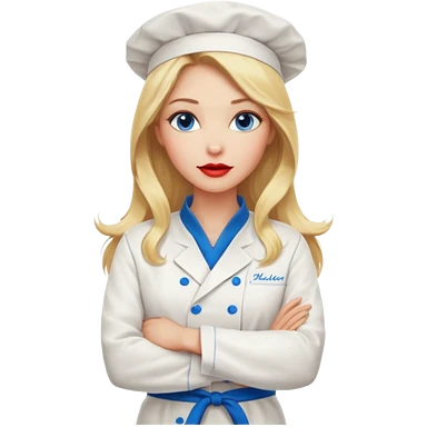 Beautiful, sexy, long blonde hair, blue eyed, full lips female chef arms folded emoji