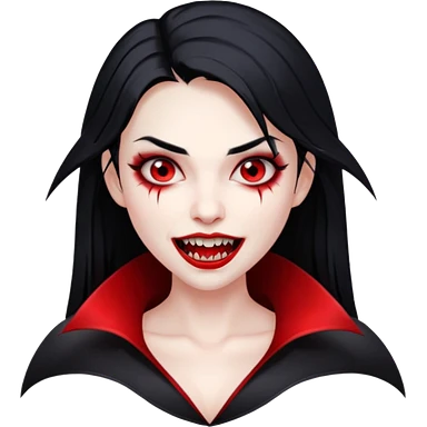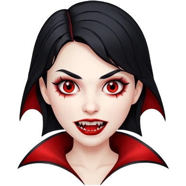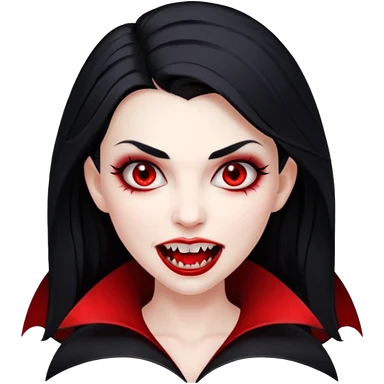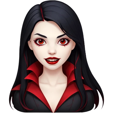 Beautiful vampire woman with long black hair and red highlights showing fangs emoji | AI Emoji Generator
