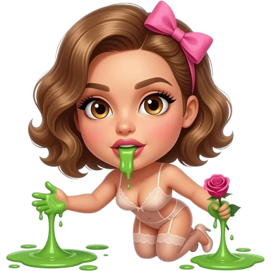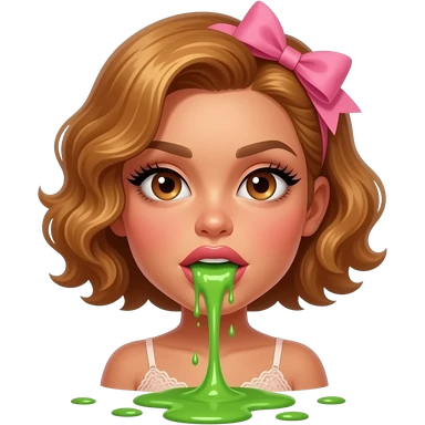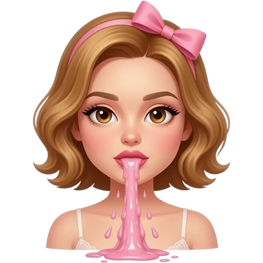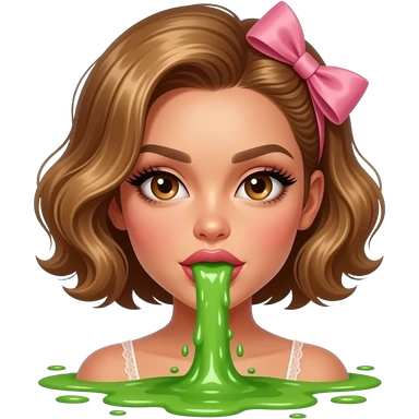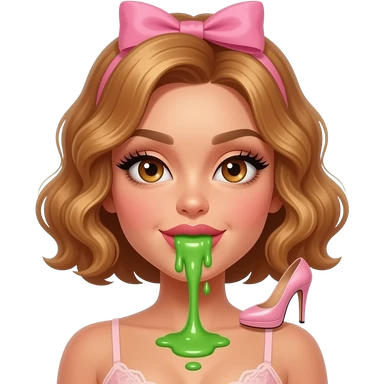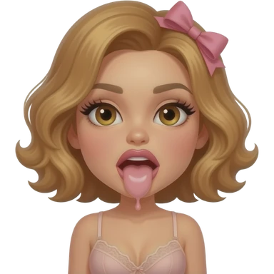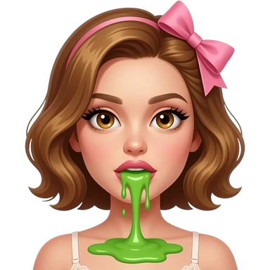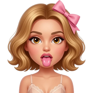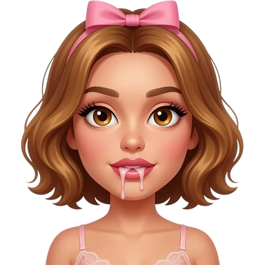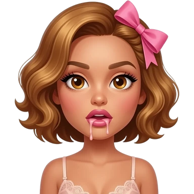 Beautiful woman, long brown hair, beige skin, model volume lips, big eyes emoji
