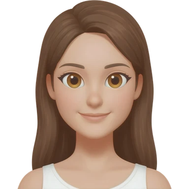 Luxury Milan girl Greta emoji: oval face, flawless skin, big light almond eyes with lashes/eyeliner, arched brows, flirty half-smile glossy lips, beauty mark, wavy warm brunette hair, gold hoop earrings, soft glow, champagne bg with sparkles, 3D sticker style, centered. emoji