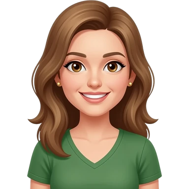 beauty, woman, gold stud earrings, brown eyes, green v neck t shirt, smiling, light brown hair, hairstyle emoji