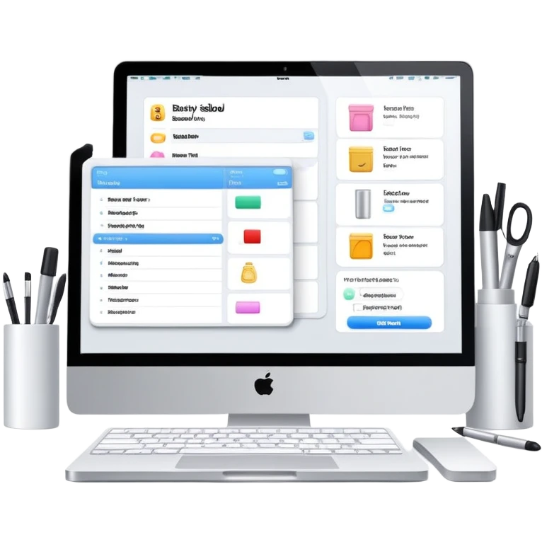 beauty salon inventory dashboard on iMac with notebook and pen nearby emoji | AI Emoji Generator