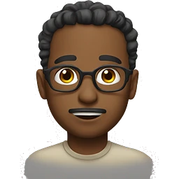 Please could you generate an emoji of a male teacher with brown curly hair and glasses stood infront of a chalkboard emoji