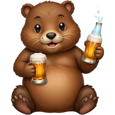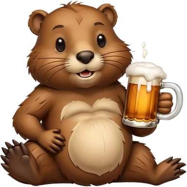 A relaxed beaver leaning back with a foamy beer mug emoji